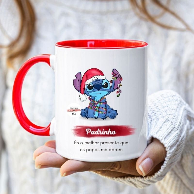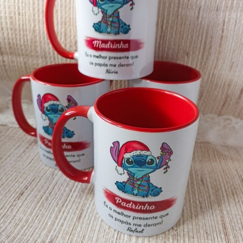Caneca personalizada com alça e interior vermelho. Versão para Padrinho. Possobilidade de acrescentar nome do Padrinho e de quem oferece.
