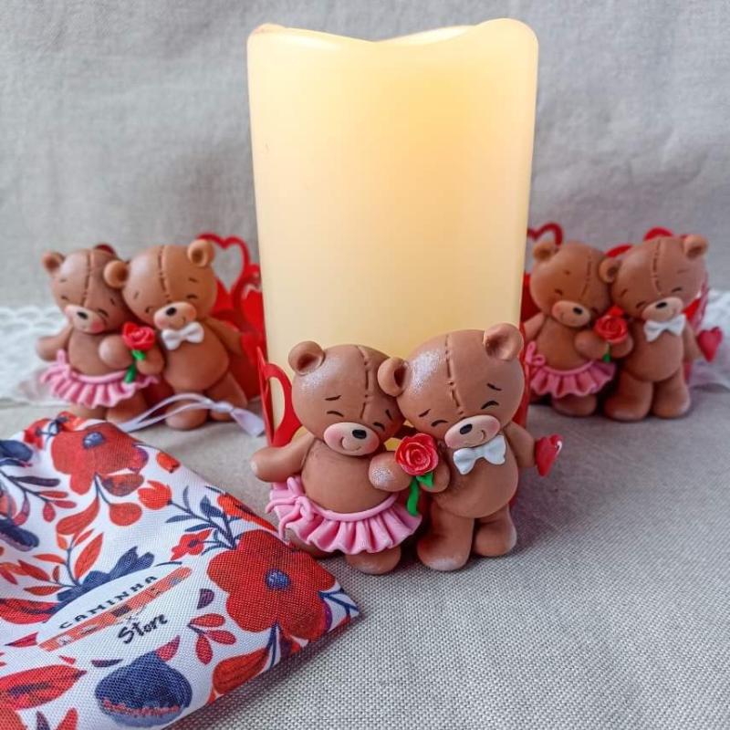 Porta Velas Artesanal Ursinho. Decorado com biscuit (porcelana fria). Perfeitos para quem gosta de decoração para este dia ou para um cantinho especial. 💓